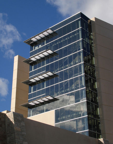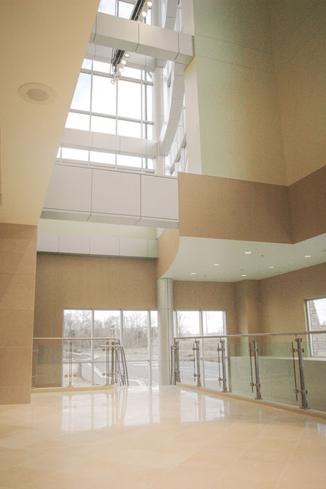 Through the Design Process, LMH worked as architect of record with Ellerbe Becket to create an iconic facility that would be recognizable to the community. The building grows out of the ground with natural stone materials and is gradually transformed with glass and metal panels as it reaches upward to create a high-tech aesthetic.